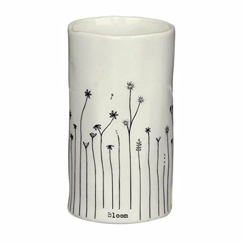 - The vase is covered in little buds of wild flowers with the word bloom on the front