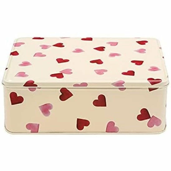 - Deep rectangular tin decorated with Emma Bridgewater hearts design