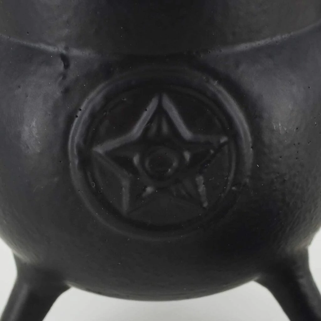 - Lovely little cauldron made from cast iron with pentagram design on the front and back
