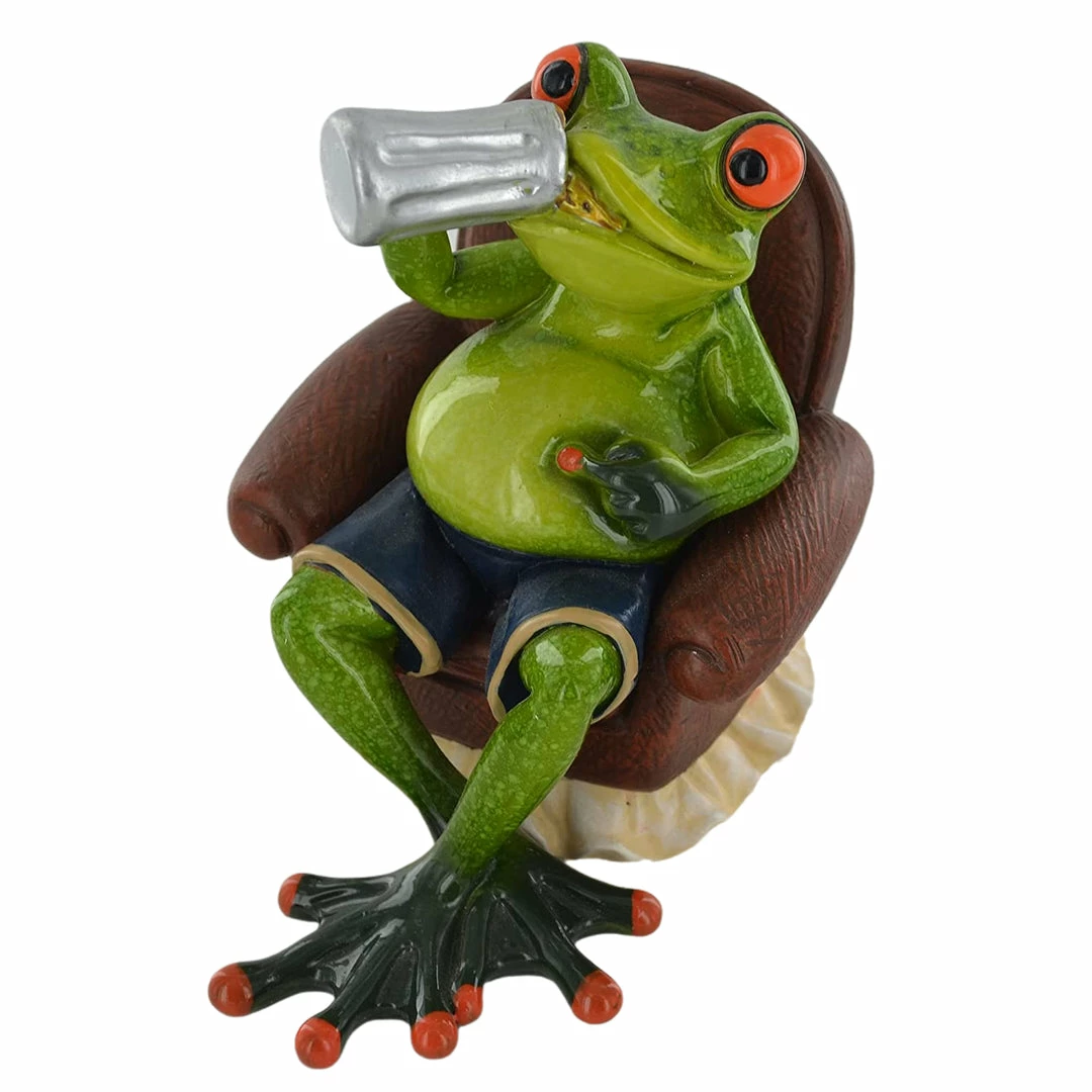 - Great funny little frogs in great poses, this one is sat in an armchair drinking beer