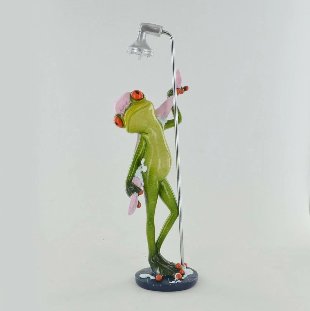- Great funny little frogs in great poses, this one is soaping up in the shower with a shower cap on