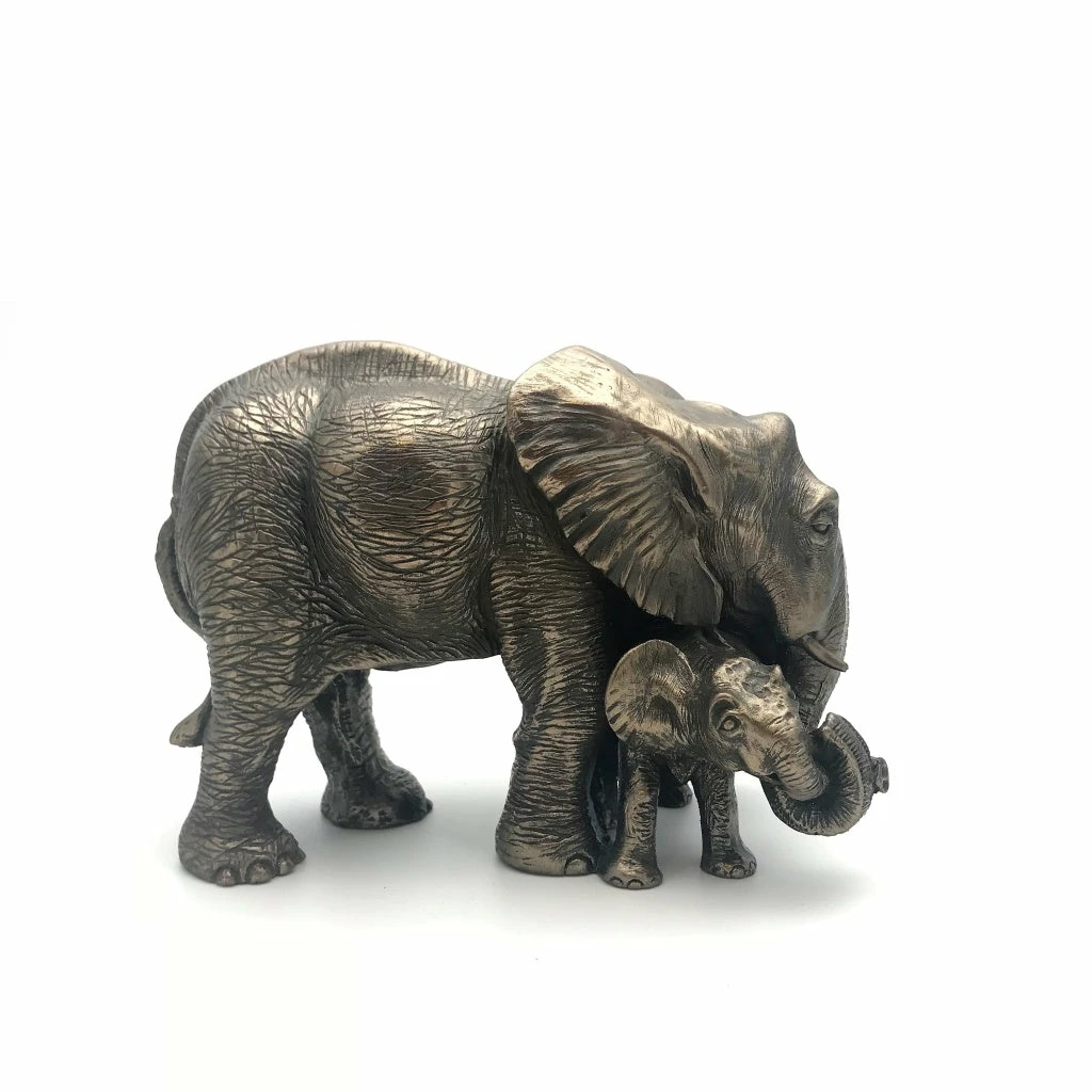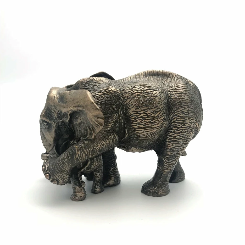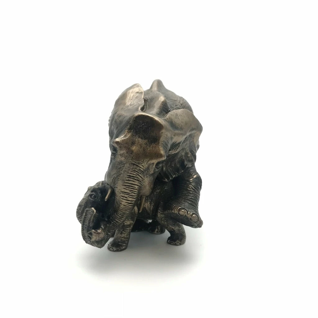 - Beautifully detailed mother and calf elephants in cold cast bronze