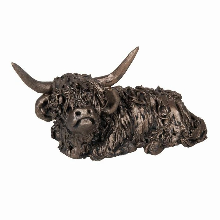 - The sitting Highland bull measures 10 cm long x 5 cm wide x 5 cm high