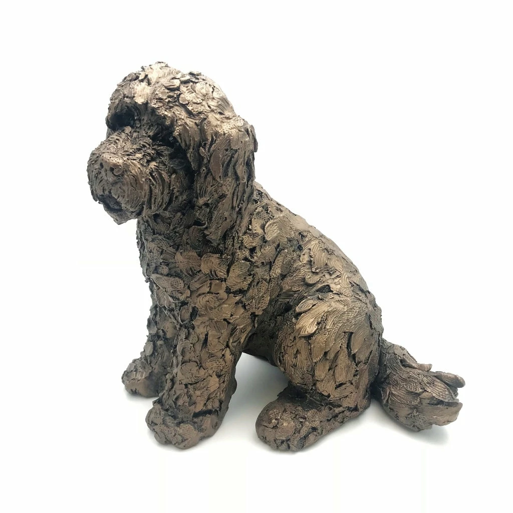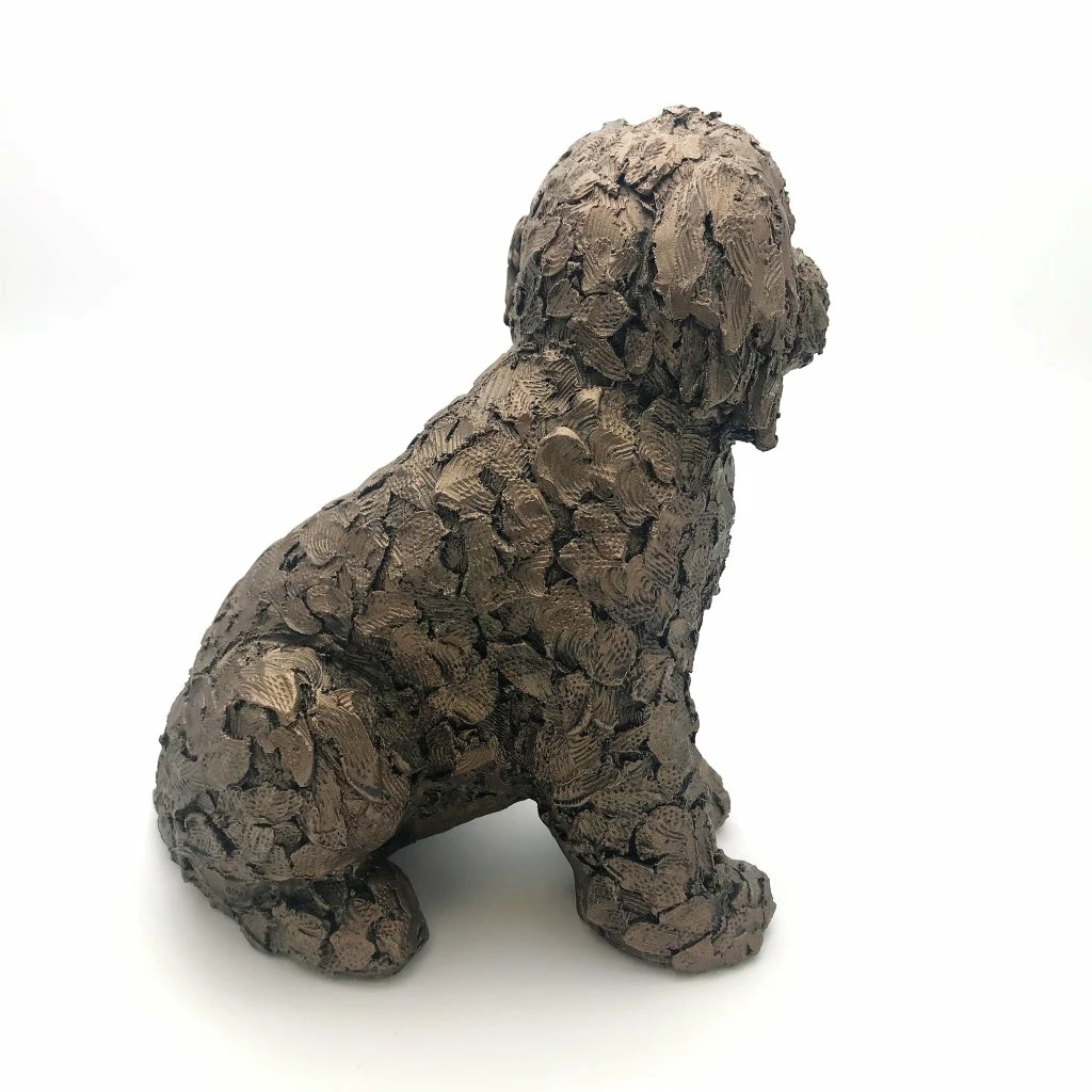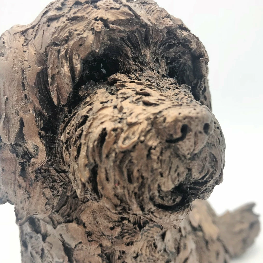 - Lucy the cockapoo is sitting down the sculpture measures 16 cm long x 19 cm tall x 12 cm wide