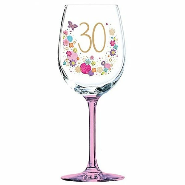Cheapest π₯ Joe Davies 30th π Birthday Pink Stem Wine Glass With Flowers By Lulu Design π§¨
