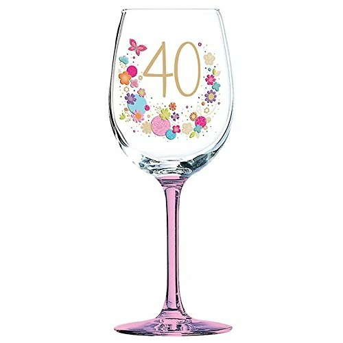 New β Joe Davies 40th π Birthday Pink Stem Wine Glass With Flowers By Lulu Design 18th – 80th π Birthdays π