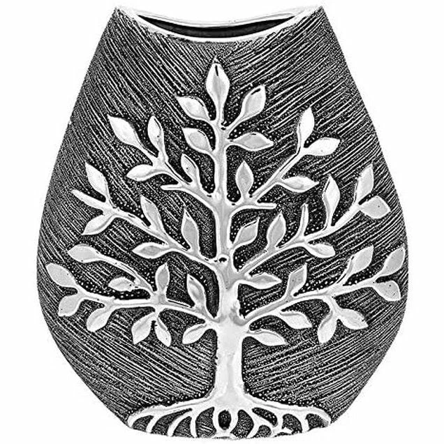 Best Pirce π€© Joe Davies Tree Of Life Vase In Gunmetal Grey & Silver Curved Edge Shudehill Giftware β€οΈ