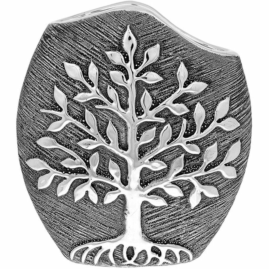 - The front of the vase has the tree of life embossed on it in striking silver