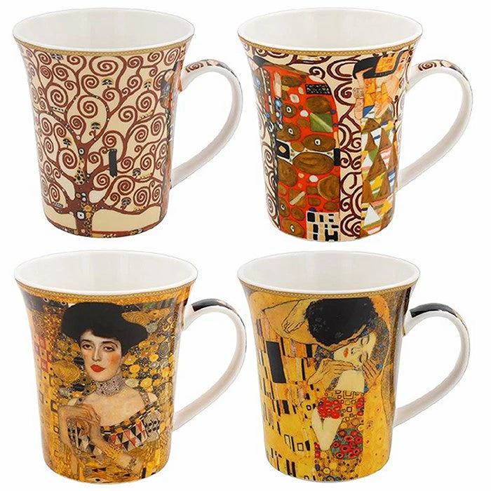 Set of four fine china mugs with different Gustav Klimt designs