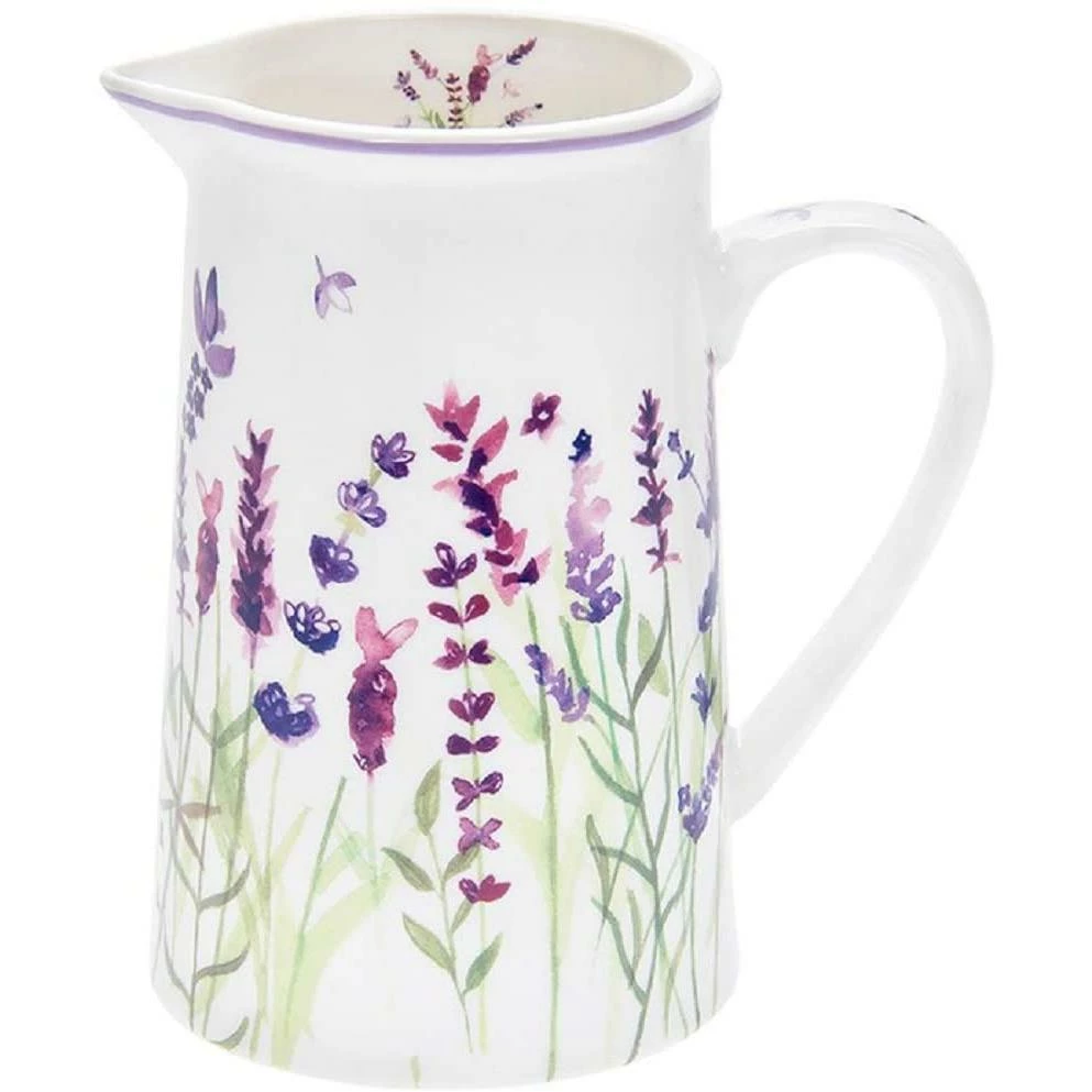 - The jug is decorated with wild lavender flowers