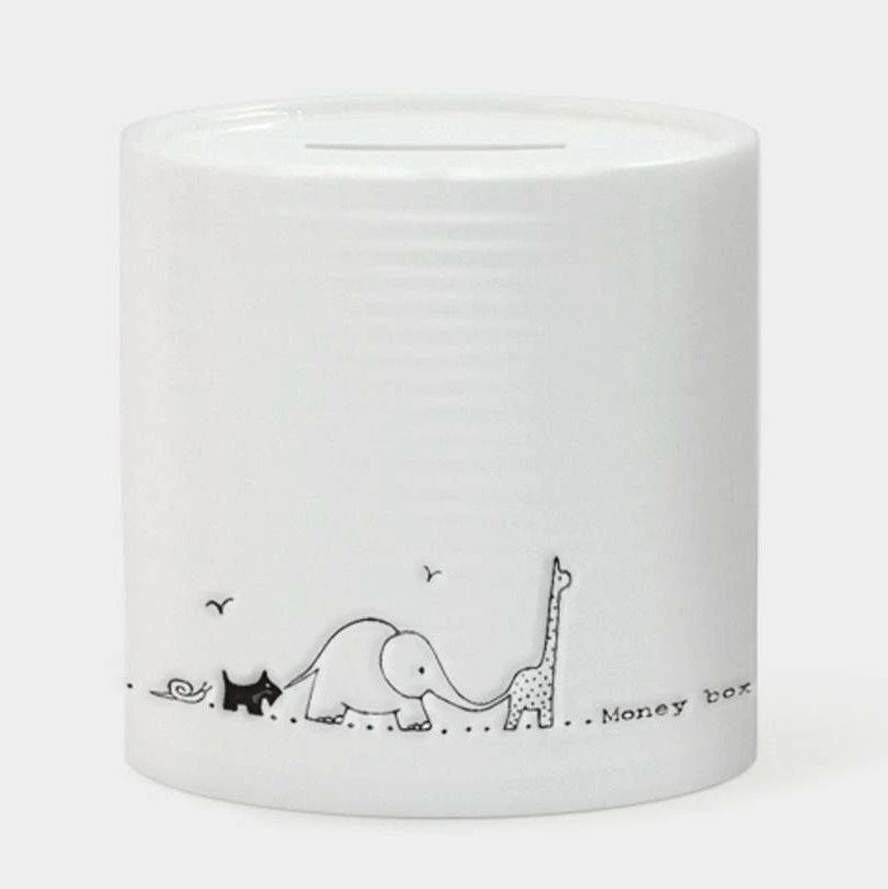 - Decorated with a giraffe, elephant, dog & snail with the wording money box