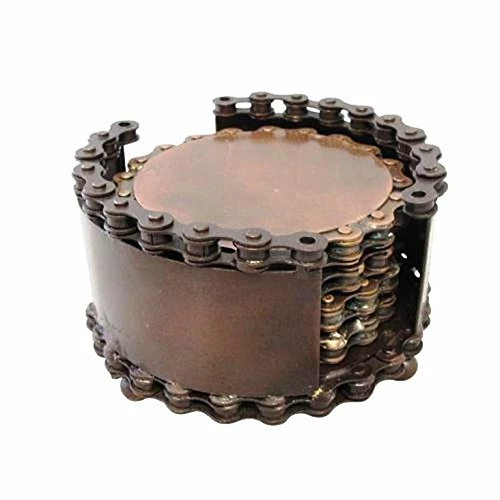 Made from recycled bike chain with a bronze finish- Set of 4 coasters and a holder / stand