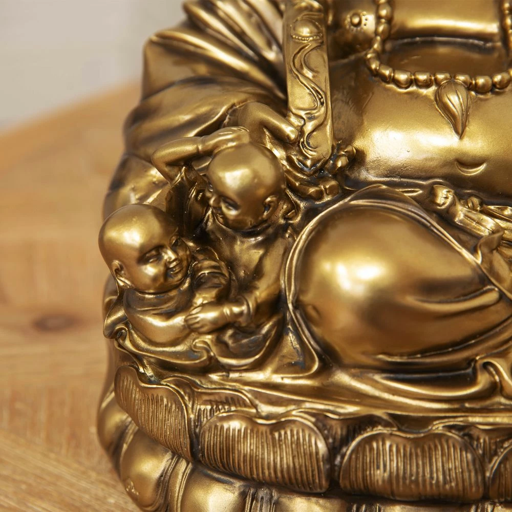 Brand new ๐ Widdop Large Happy Buddha Sitting Laughing In Gold Coloured Finish Ornaments โ๏ธ